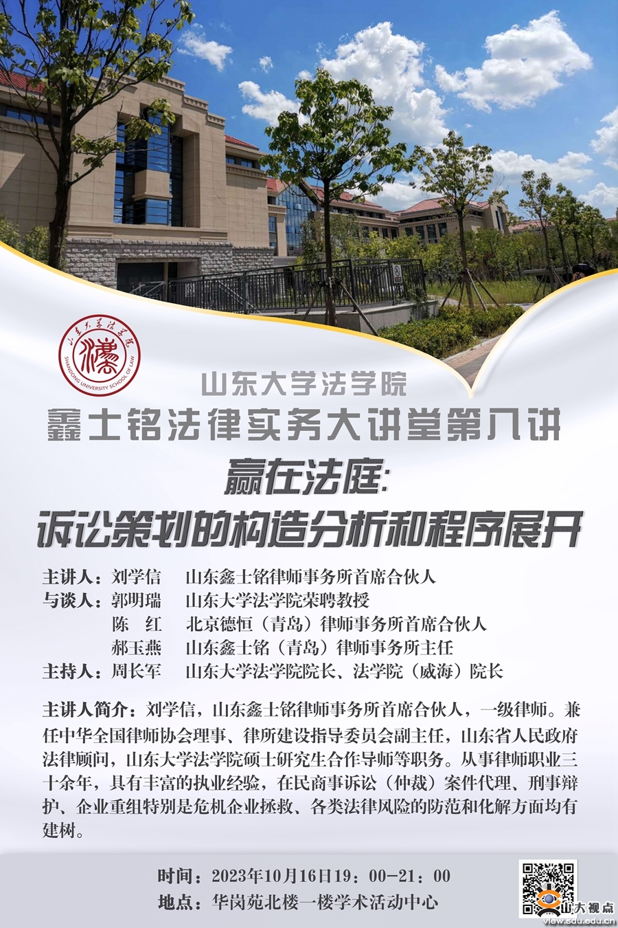 山东大学法学院鑫士铭法律实务大讲堂第八讲——赢在法庭:诉讼策划的构造分析和程序展开