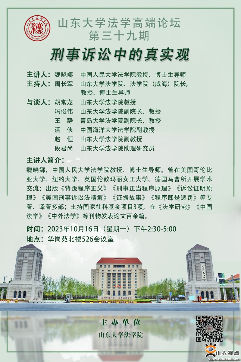 山东大学法学高端论坛第三十九期: 刑事诉讼中的真实观