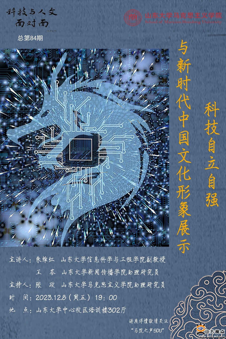[本站讯]为了更好地展现新时代的中国文化形象,感悟新时代新征程上中国企业的科技自立自强担当,了解中国文化软实力的国际传播状况,科技与人文面对面工作室将于2023年12月8日周五晚19:00举办以“科技自立自强与新时代中国文化形象展示”为主题的学术沙龙活动。