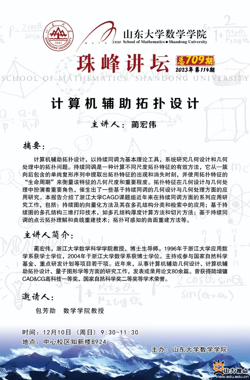 数学学院珠峰讲坛第709期:计算机辅助拓扑设计