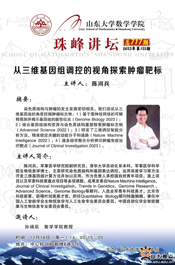 数学学院珠峰讲坛第717期:从三维基因组调控的视角探索肿瘤靶标