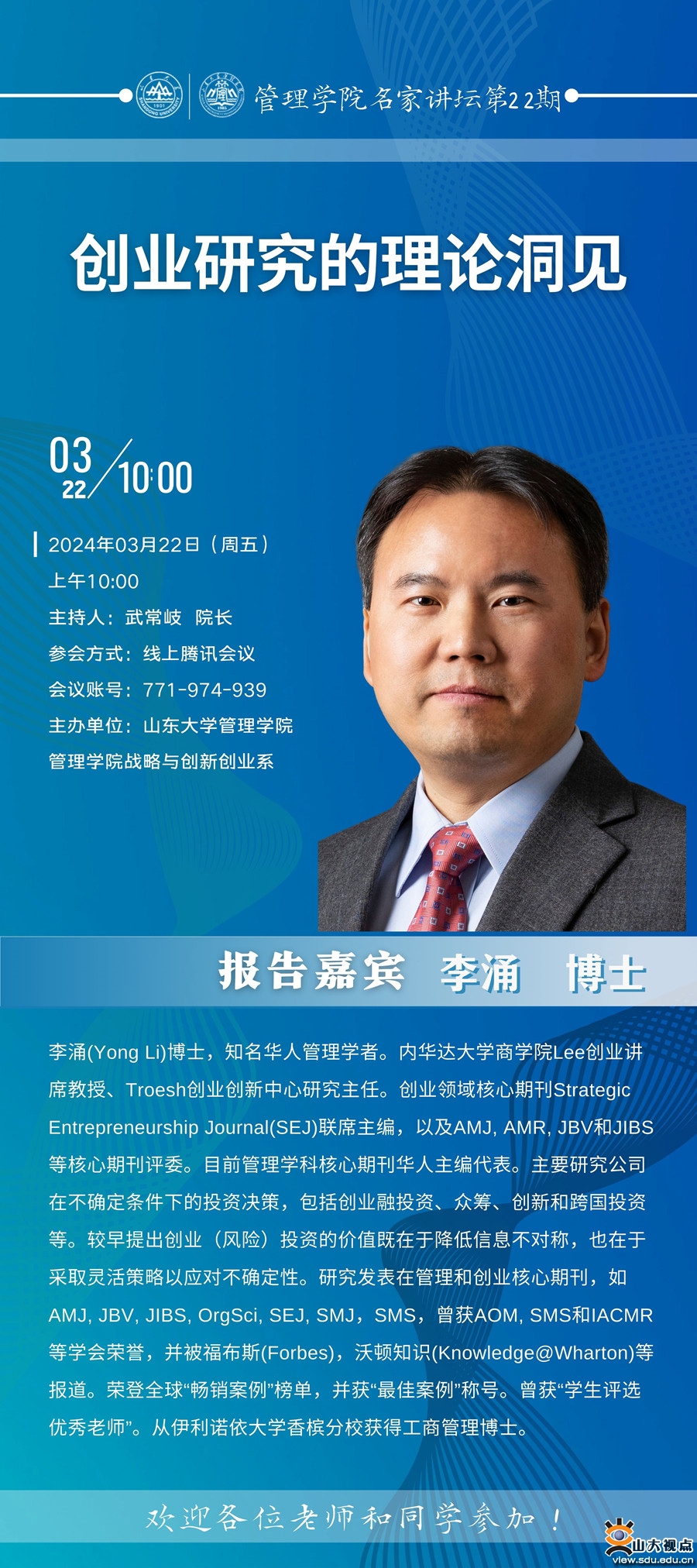 管理学院名家讲坛第22期:创业研究的理论洞见