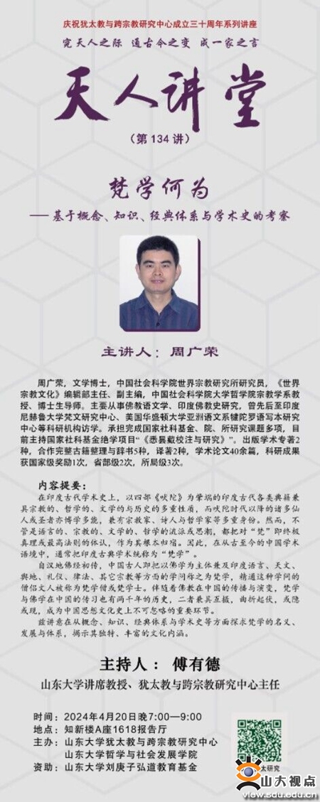 庆祝犹太教与跨宗教研究中心成立三十周年系列讲座:天人讲座第134讲 | 梵学何为——基于概念、知识、经典体系与学术史的考察
