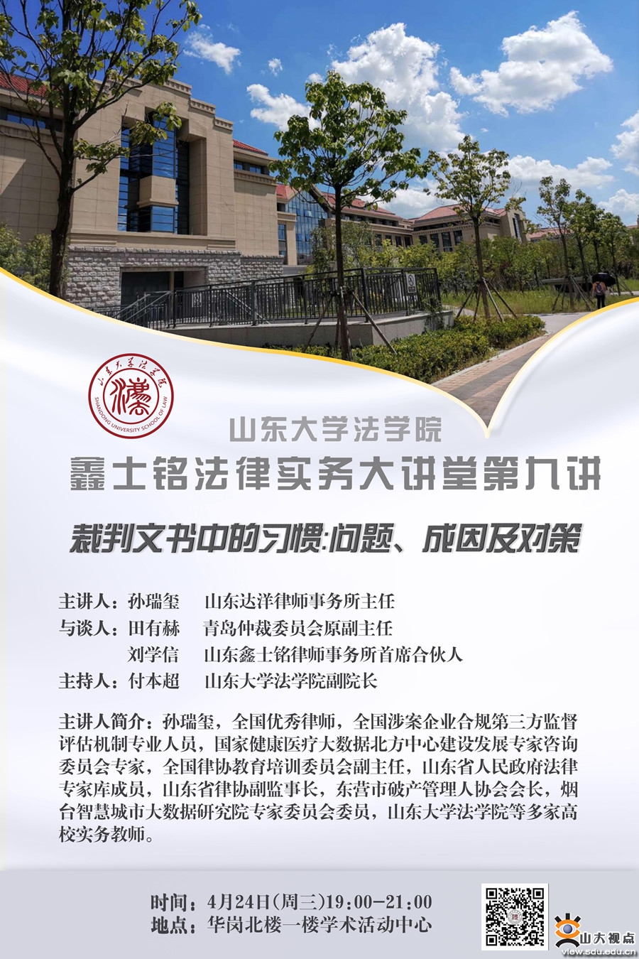 山东大学法学院鑫士铭法律实务大讲堂第九讲——裁判文书中的习惯:问题、成因及对策