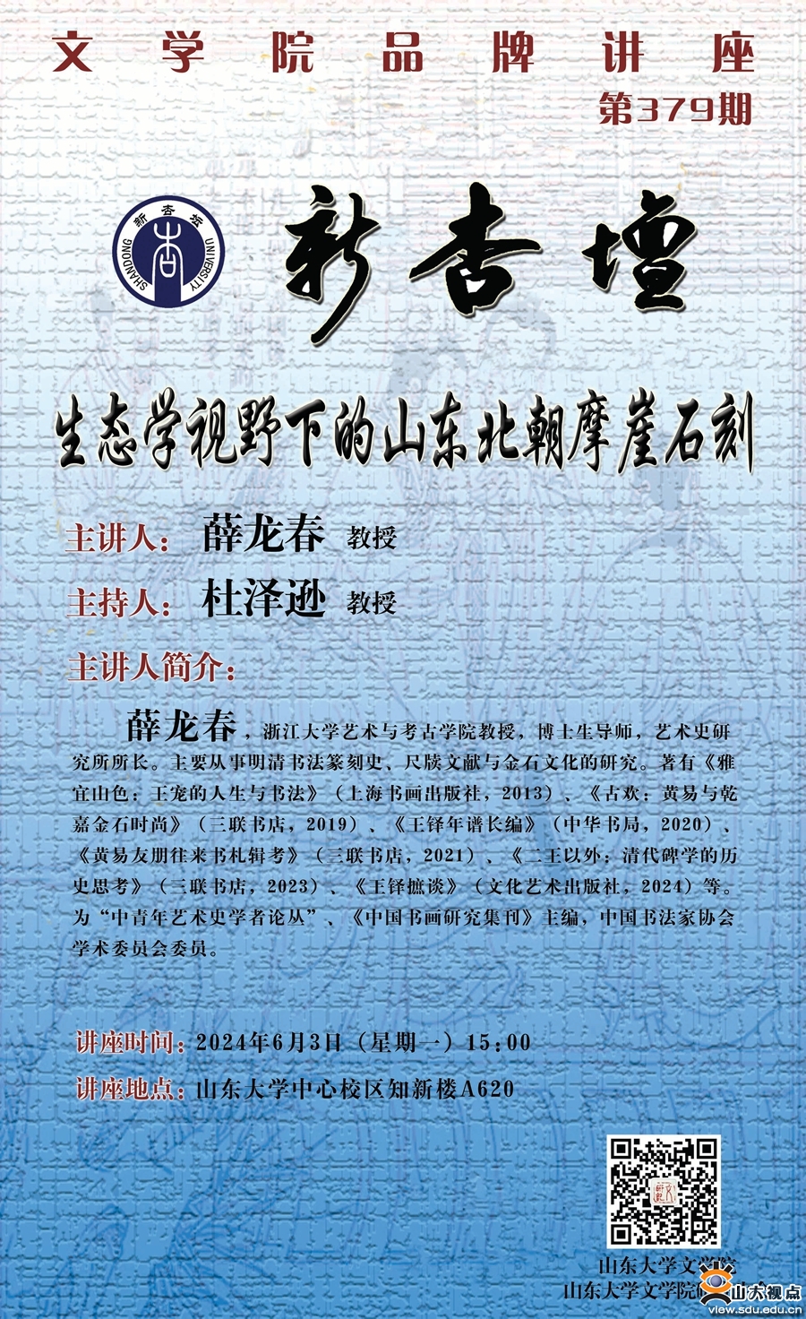 讲座首先评述西方汉学在研究中国摩崖石刻时所倡导的地理景观学方法,认为这一方法往往包含了非时间、非历史的因素,容易将历史上累积生成的景观理解为设计景观,或者艺术创作。摩崖石刻生态学的概念,须考虑到题刻常常是就地取材,其意义须从功能、成本、技术以及最终的形式中探求,同时要引入时间变化的视野。讲座还将讨论,由于摩崖嵌入了山林之中,文字的辨识与推求往往使得观览风景转换为阅读风景,这也是一种独特的塑造名胜的方式,拓本在其中起重要作用。而访碑图由记游变成虚构,将友人编织到想象的访碑之旅的做法,也增添了景点的人文意趣。