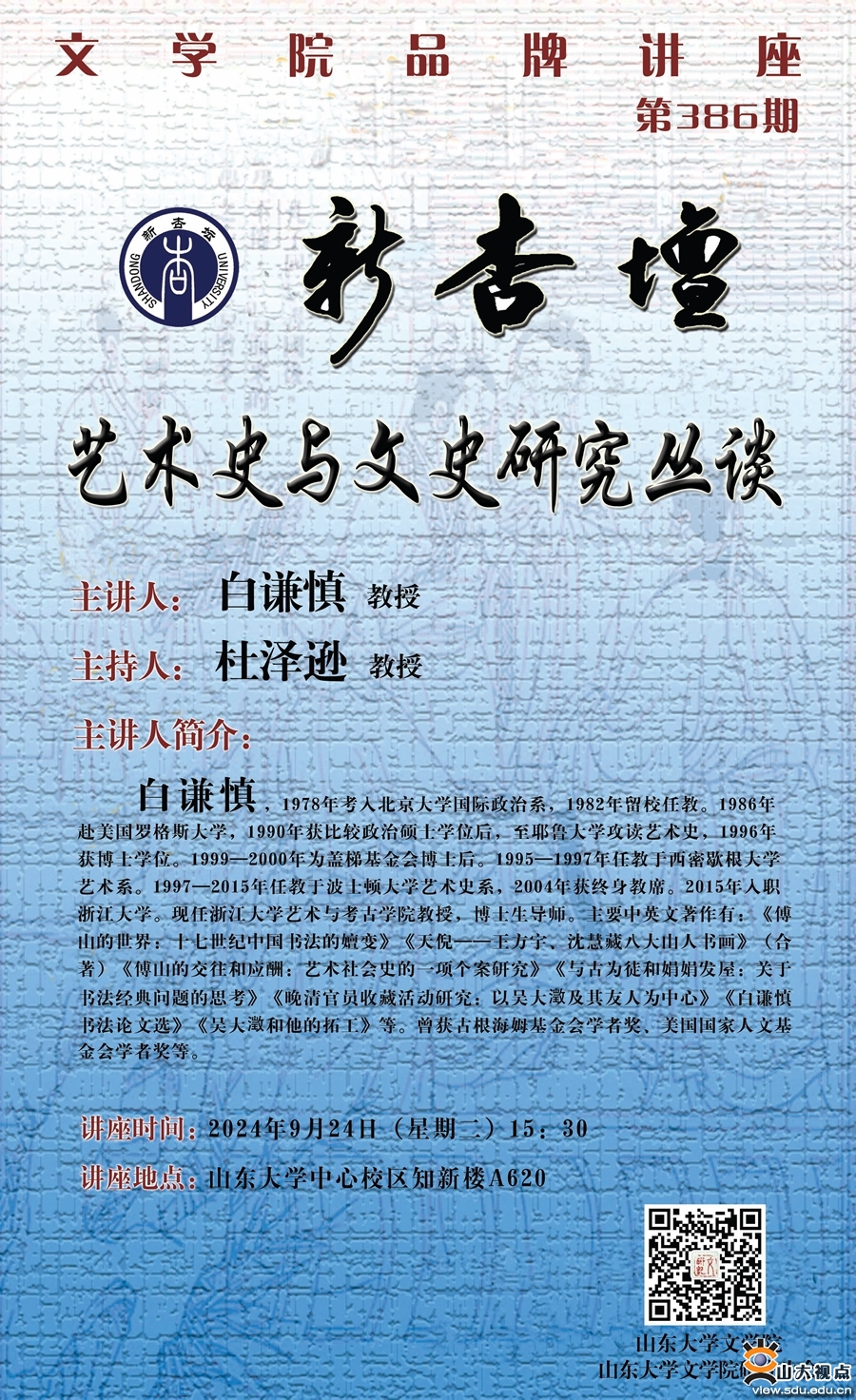 近几十年来,随着人文社会科学的长足进步,中国艺术史研究也愈发凸显出重要的意义。艺术史家白谦慎教授将结合其最新的研究成果,以数个精密且具启发性的明清艺术史个案为切入点,展示当下艺术史研究的前沿进展。这些研究一方面呈现了如何在更为有利的学术条件下扩大材料的范围、展开精密的论证、提炼有价值的议题、深入且适度地阐发理论;另一方面也反映出当下的艺术史研究仍有着巨大的发展前景,可以对文史研究各个领域起到重要的推进作用。