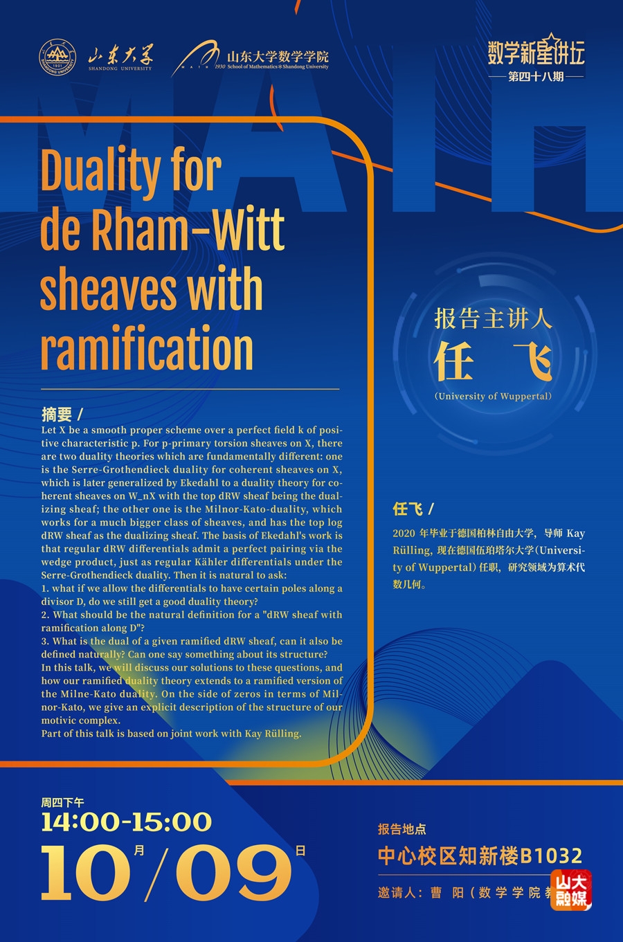 数学学院新星讲坛第48期:Duality for de Rham-witt sheaves with ramification