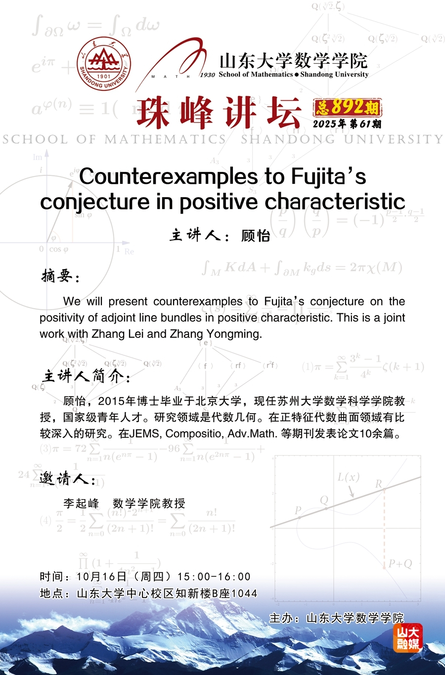 数学学院珠峰讲坛第892期:Counterexamples to Fujita's conjecture in positive characteristic