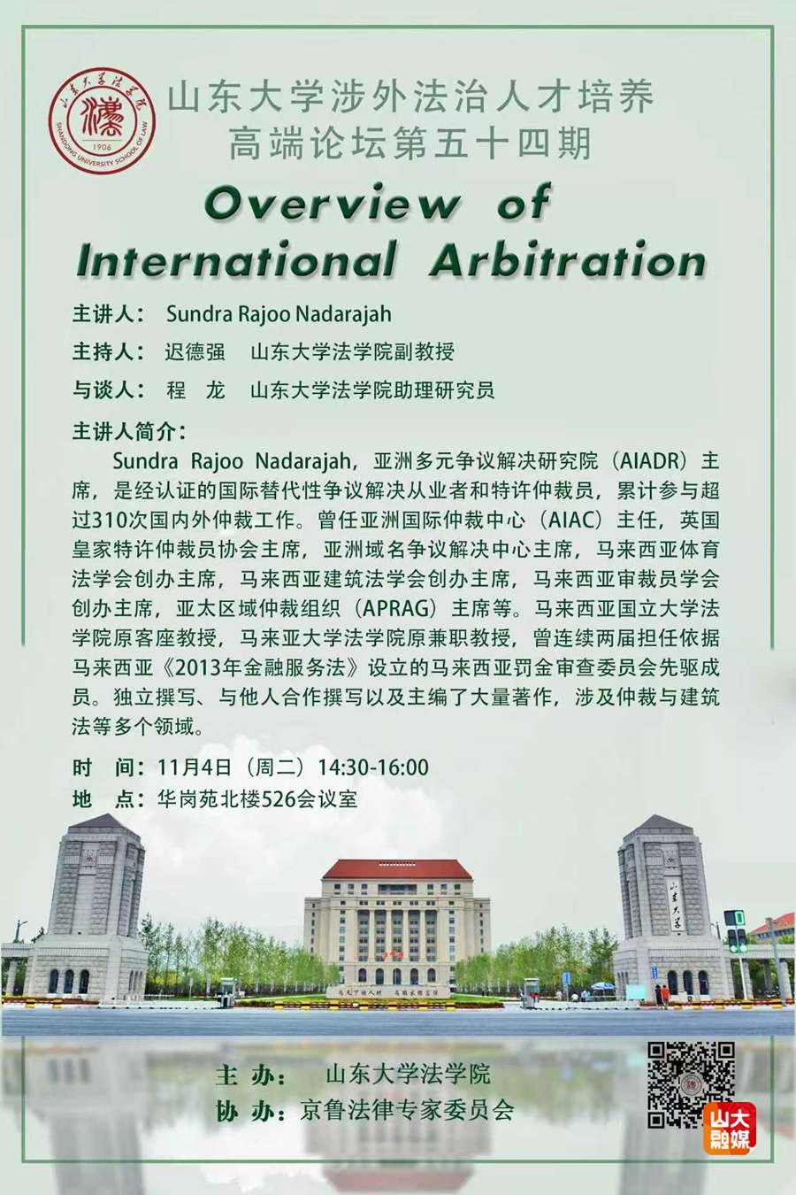 山东大学涉外法治人才培养高端论坛第五十四期: Overview of International Arbitration
