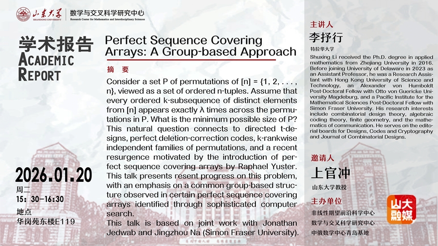 发布:山东大学融媒体中心 日期:2026年01月20日 点击数: