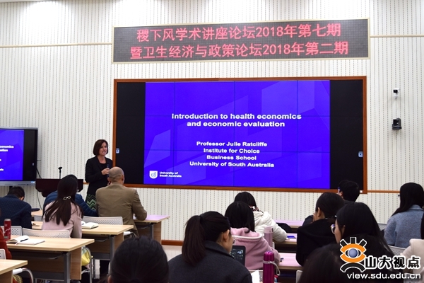 [本站讯]3月22日下午,由山东大学研究生院、党委研究生工作部主办,医药卫生管理学院承办的第7期(总第672期)“稷下风”研究生学术讲坛在趵突泉校区举行。澳大利亚南澳大学Julie Ratcliffe教授做客此次讲坛,讲述的主题为“Introduction to Health Economics and Economic Evaluation”。本次讲坛由医药卫生管理学院李顺平副教授主持。
