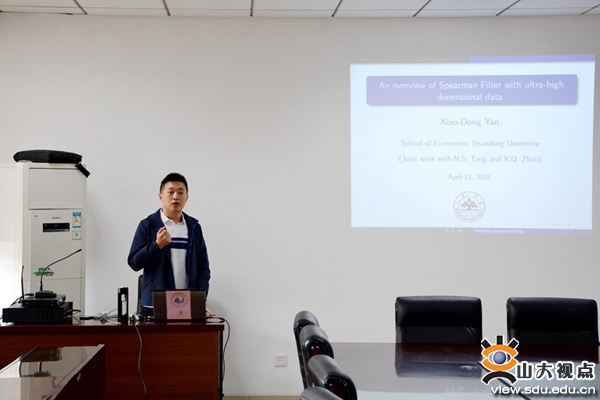 [本站讯]4月12日下午,经济学院第203期高级经济学讲座在中心校区举行。山东大学经济学院助理研究员、香港理工大学研究助理严晓东为经济学院师生带来了题为“An overview of Spearman filter with ultra-high dimensional data(超高维数据的斯皮尔曼滤波器概述)”的学术报告。