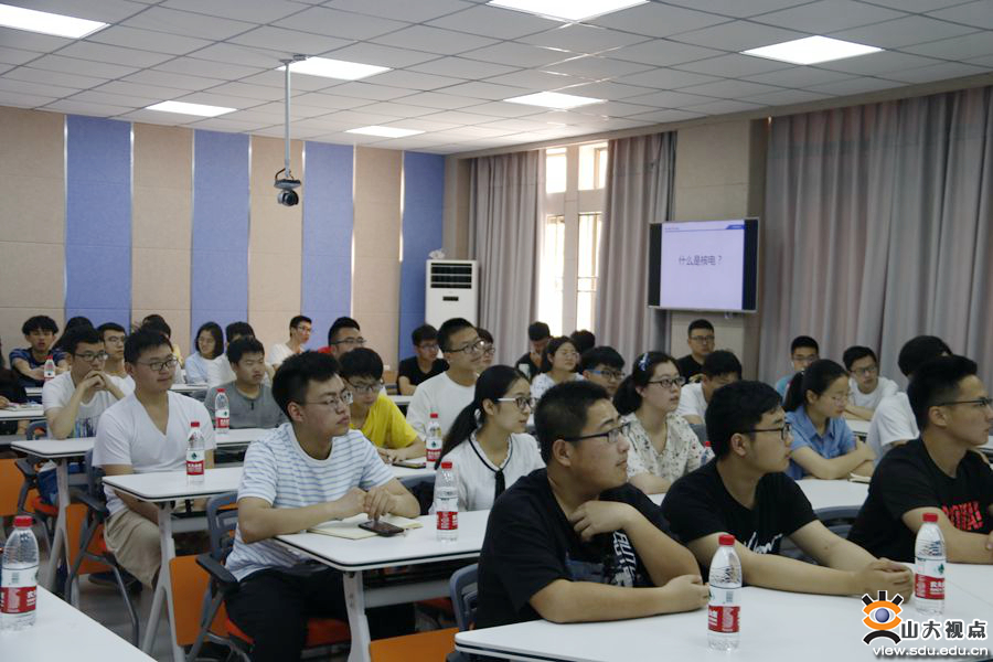 沙龙伊始,王建东通过与大家互动交流,生动地阐述了核能技术短暂而迅猛的发展历史。在科普环节中,王建东用动画简要讲述了核电站的运作过程和安全措施,之后又以大亚湾核心站为例,着重介绍了核电的经济、社会效益,从国家战略上表明了未来一段时间中国核电的广大前景。针对大多数人对核电安全的疑虑,王建东介绍了国家的核电安全监督措施和相关法律法规,并从“核安全文化”的角度审视了核安全事业的工作性质与工作要求。接着,王建东还介绍了青年大学生在广核集团的就业机会、岗位待遇等,并介绍了广核集团和山东大学的渊源,为感兴趣的同学提供了有效的就业信息。最后,王建东号召大家积极把握校外实习机会,丰富自己的大学经历,尽早把自己培养为能够走向社会的有用之才。