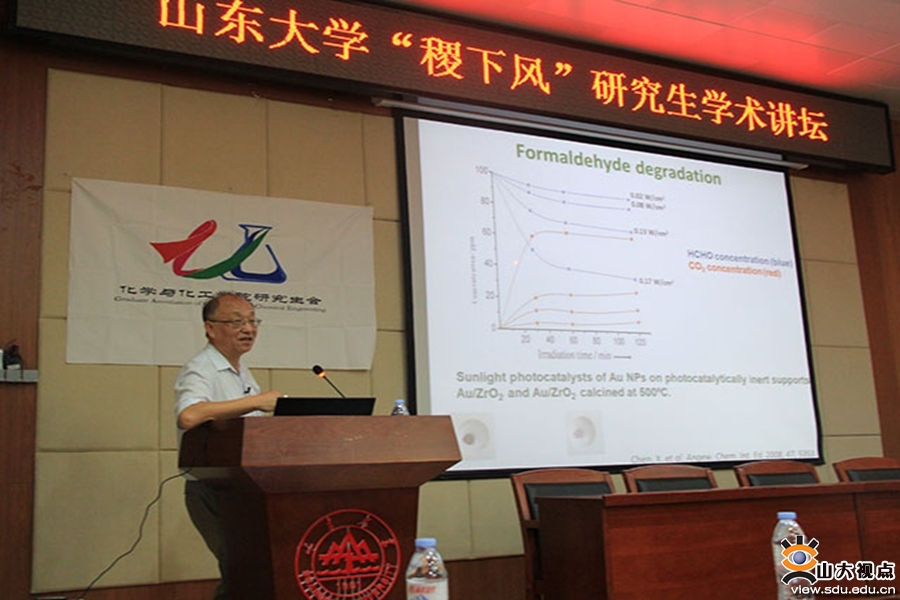 [本站讯]9月27日上午,由山东大学研究生院、党委研究生工作部主办,化学与化工学院承办的第100期(总第877期)“稷下风”研究生学术讲坛举行。澳大利亚昆士兰科技大学朱怀勇教授给同学们带来了题为“Tuning plasmonic catalysis by light-induced adsorption”的精彩报告。化学与化工学院王一峰教授主持讲坛。