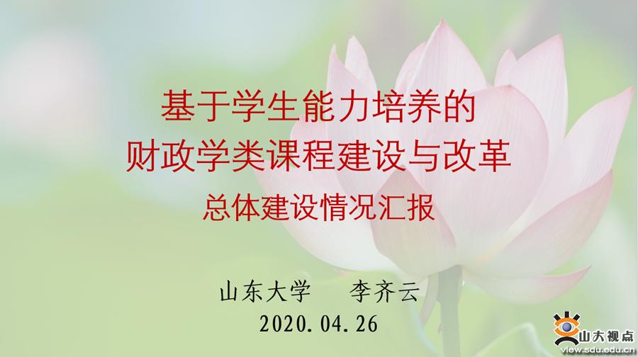 [本站讯]4月26日,教育部财政学类专业教学指导委员会主办、山东大学经济学院承办的第七期财政学类专业骨干课程教学分享会以线上会议形式召开,会议主题为“基于学生能力培养的财政学类课程建设与改革”。教育部财政学教指委主任委员、山东大学校长樊丽明教授出席会议并致辞。分享会由财政教指委秘书长、山东大学经济学院副院长石绍宾主持,山东大学财政学教学团队负责人李齐云教授以及团队成员陈东教授、李华教授、汤玉刚教授和李一花教授主讲发言。