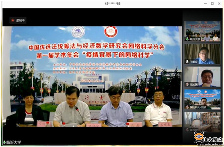 本次会议主题为“疫情背景下的网络科学”,会议以线上线下相结合的形式举行。中国优选法统筹法与经济数学研究会原理事长、顾问徐伟宣,中国优选法统筹法与经济数学研究会副理事长李建平,临沂大学副校长池福安,中国优选法统筹法与经济数学研究会网络科学分会副理事长吴建军、石磊、范如国、王明征、吕欣、孟庆春等出席本次会议。