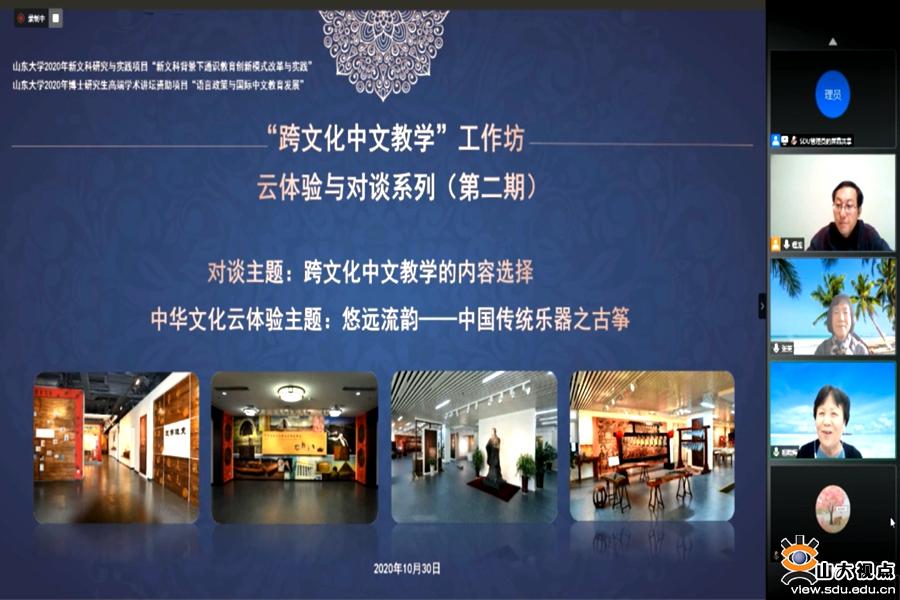 在山东大学新文科研究与实践项目和山东大学博士研究生高端学术讲坛项目的支持下,学校中华传统文化研究与体验基地、孔子学院研究中心和加拿大中文教师协会联合策划“跨文化中文教学工作坊:云体验与对谈系列”系列学术活动,邀请国内外相关领域的专家学者和一线中文教师参与讨论。该系列活动计划持续开展四期,现已完成第一期和第二期,计划于2020年11月份完成。