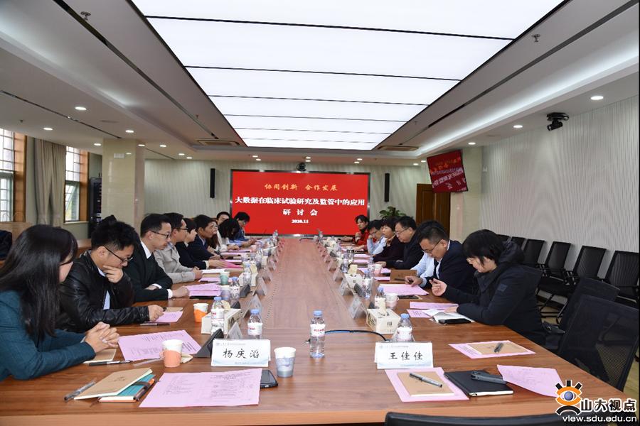 药品监管科学研究院副院长臧恒昌、联仁健康医疗大数据科技股份有限公司副总裁赵永杰分别介绍了各自单位的基本情况,就合作方向和意向作了阐述和讨论。药品监管科学研究院共建单位,山东省食品药品审评认证中心业务科科长柏建学、齐鲁医院药物临床试验机构办公室主任王白璐、山东大学药学院临床药学系主任赵维、山东省区域医药伦理审查委员会办公室主任卜丽娟、山东大学医疗健康大数据研究院副院长季晓康、山东健康医疗大数据有限公司健康医疗事业部副总经理潘琪分别对各单位在药品监管科学领域的优势及大数据在临床试验研究及监管中的应用作了介绍。