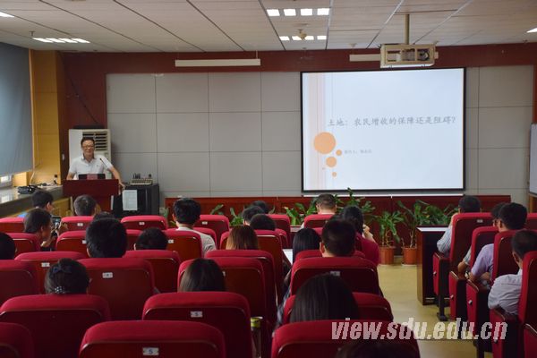 [本站讯]9月24日下午,经济学院高级经济学讲座第122期在山东大学中心校区举行。来自安徽工业大学商学院的骆永民教授应邀作了题为“土地:农民增收的保障还是阻碍?”的学术报告。报告由经济学院副院长石绍宾主持。