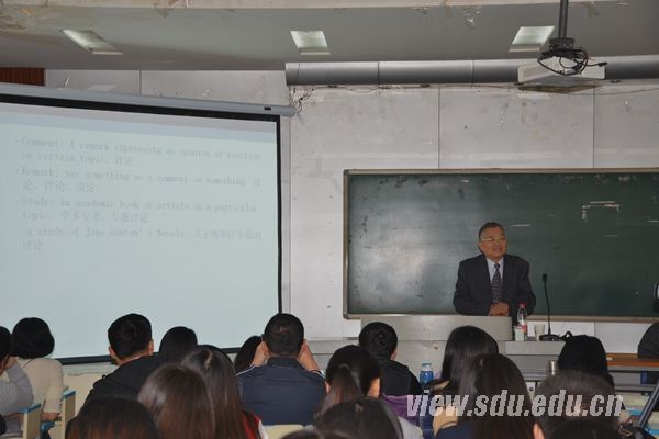 杨仁敬教授的讲解和指导使现场师生对英文学科学术论文写作和项目申请工作有了全面的认识,同时也进一步激发了师生对于科研工作的热情和信心。外语学院郭继德教授主持讲座。