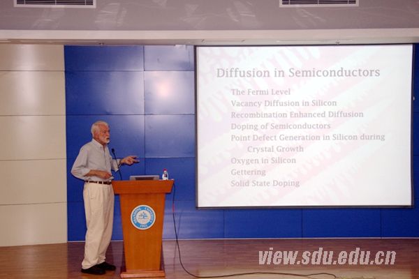 Jackson教授首先从基础理论出发,对晶体生长动力学进行了概述,介绍了晶体生长理论中的Arrhenius公式、动力学与热力学、Boltzmann分布及扩散理论。为了让大家更好地安排时间,Jackson教授提纲挈领地介绍了系列报告的课程安排。整个报告气氛热烈,Jackson教授热情地解答了大家对晶体生长理论方面的提问,从理论的角度帮助同学们分析晶体生长实验中的问题。来自山东大学晶体所、材料学院以及化学院的部分师生聆听了此次讲座。
