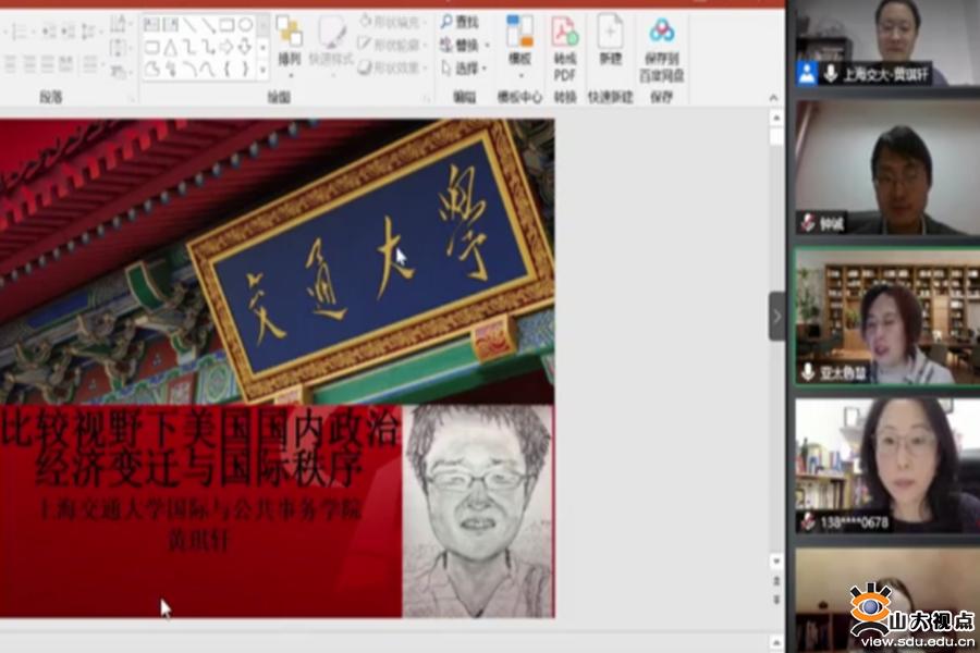 [本站讯]3月27日晚,由山东大学政治学与公共管理学院和亚太研究所联合主办、亚太所社会与文化研究中心承办的“社科与人文”系列讲座第六讲“比较视野下美国国内政治经济的变迁与国际秩序”在线上举行。本次讲座邀请上海交通大学国际与公共事务学院黄琪轩教授担任主讲人。