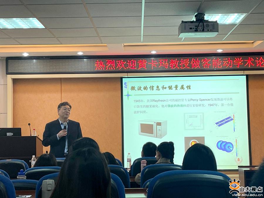 黄卡玛教授以“微波的能量属性及其应用风暴”为主题,对微波的发现及应用进行了系统的介绍,讲解微波能量属性的应用尤其在无线能量传输和微波工业中的应用。黄卡玛教授为同学们讲述自己的科研工作与经历,展示曾经的科研笔记,并就老师和同学们提出的关于微波对人类发展的影响、微波在不同领域的应用及目前微波应用中存在的问题及未来发展进行了细致的讲解。