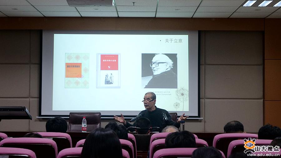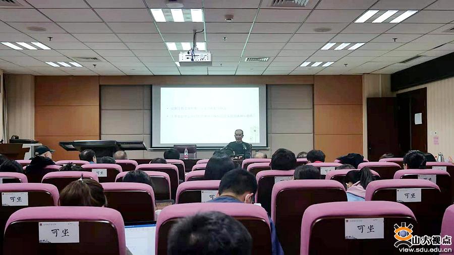 [本站讯]4月19日晚,山东大学人文社科青岛研究院驻院专家、诗人、作家、国家一级编剧杨争光先生做客“文学大讲堂”,在知新楼作题为“叙事文学经典与叙事文学传统漫谈”的学术讲座。讲座由文学院丛新强教授主持。