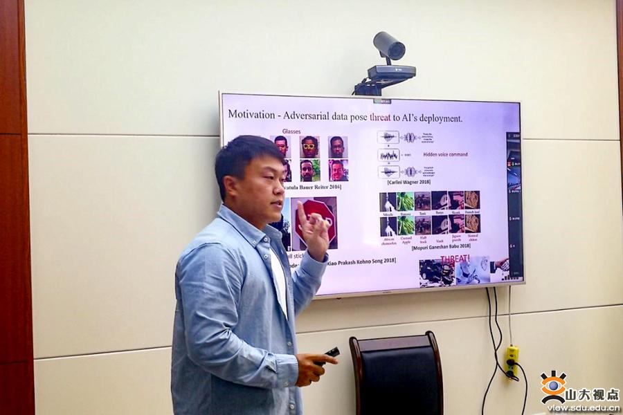 [本站讯]4月17日,第十一期“泰山学子讲堂”学术报告会在线下中心校区、青岛校区及腾讯会议线上同步举行。泰山学堂2014级计算机取向毕业生王同翰、2012级计算机取向毕业生张景锋分别作题为《Role-Based Deep Cooperative Learning》和《Recent Advances and Opportunities in Adversarial Robustness》的报告。计算机学院陈竹敏教授、任昭春教授特邀参加了本次活动,会议由泰山学堂2014级物理取向毕业生尹若愚主持。