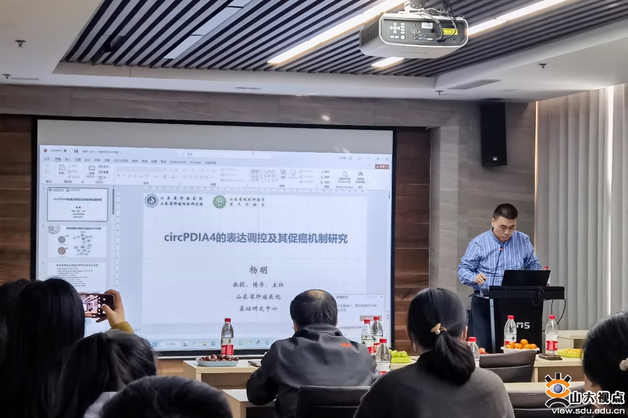 [本站讯]3月1日,基础医学院举办第八十一期卓越论坛,邀请山东省肿瘤防治研究院教授杨明作了题为“circPDIA4的表达调控及其促癌机制研究”的学术报告,详细介绍了课题组近年来的研究成果。