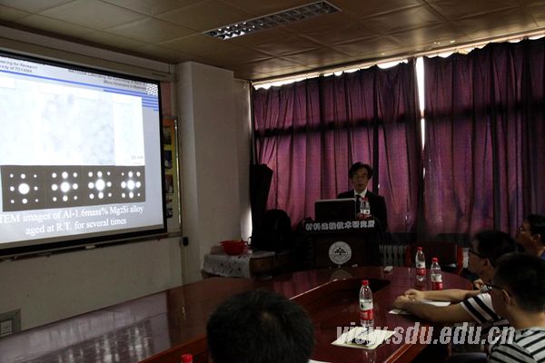 7月16日,松田教授首先介绍了日本富山大学和他的团队概况,然后全面、系统地讲解近年来他在铝合金、铸铁和超导材料等方面的最新研究成果以及高分辨透射电镜在时效铝合金时效过程中的组织与相变中的观察应用,分析了Ag添加、Cu添加以及两段时效对Al-Mg-Si时效过程中相变的影响等。报告结束后,松田教授耐心地为博士及硕士研究生答疑解惑。