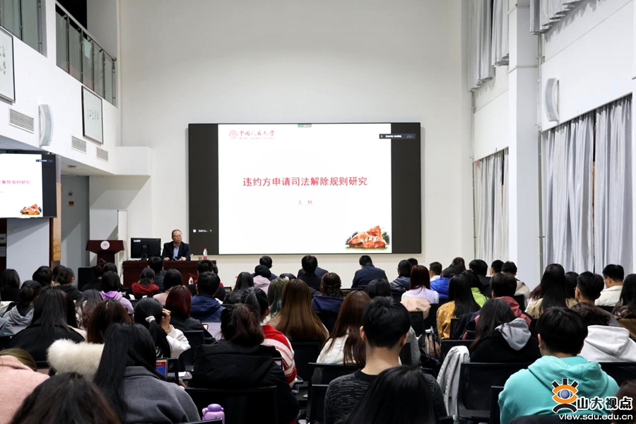 [本站讯]3月24日晚,山东大学法学院高端论坛第二十九期讲座于华岗苑顺利举办。中国人民大学副校长王轶担任主讲人,以“违约方申请司法解除规则研究”为题作讲座。本次讲座由山东大学青岛校区党工委书记邢占军,山东大学法学院、法学院(威海)院长周长军主持。中国政法大学民商经济法学院副教授王雷,烟台大学法学院教授刘经靖,山东大学法学院教授张平华、助理研究员孙犀铭担任与谈人,线上线下一百余人参会。