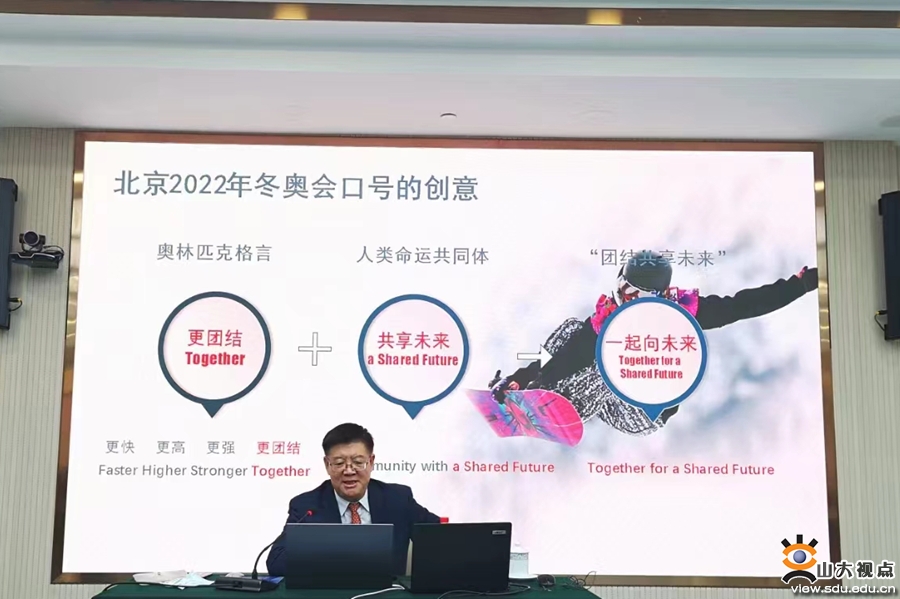 随后,国家治理研究院首期泺源智库讲坛正式开讲,孙维佳应邀作了题为“从北京冬奥会看国家形象传播顶层设计:兼谈智库能力建设”的报告,探讨了国家形象建设与国际传播的战略谋划过程,对国家形象建设及国际传播经验、效果与启示等进行了精彩阐发。