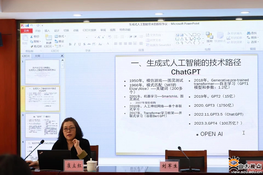 [本站讯]为庆祝第23个世界知识产权日,法学院知识产权法研究所教授崔立红于4月21日出席由济南知识产权法庭主办,济南市律师协会信息网络委员会、济南市律师协会知识产权委员会承办的“IP LECTURE”,并以“技术中立与人类福祉:生成式人工智能给版权制度带来的争议”为题作专题讲座。