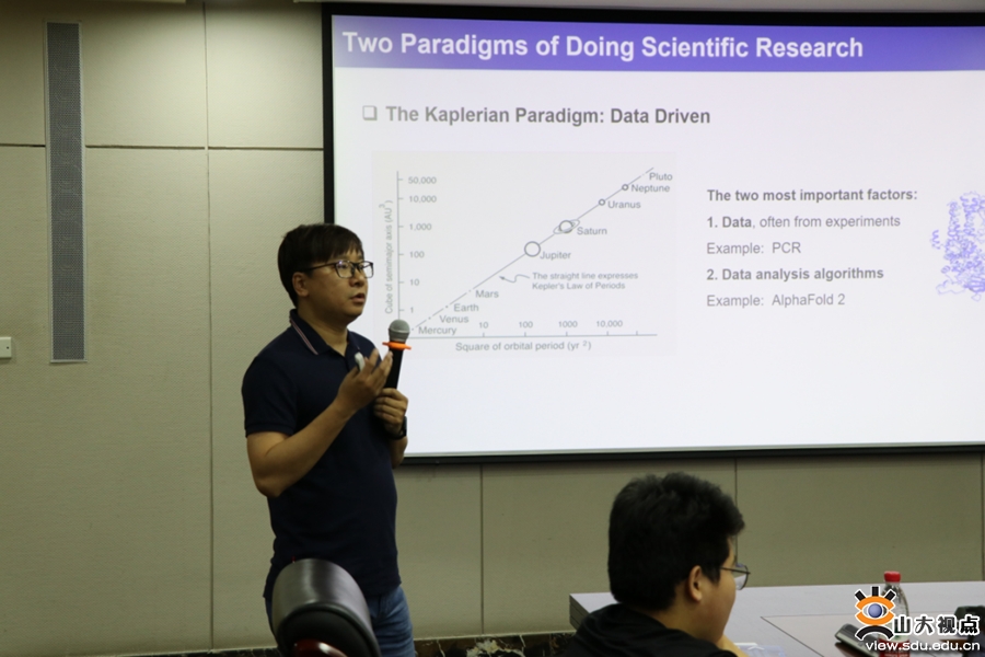 [本站讯]5月11日,第六期“SDU TALK”生物物理与智能医学学科交叉青年论坛在中心校区举行。本期论坛以“物理赋能,医养健康”为主题,由共青团山东大学委员会、物理学院、药学院、材料科学与工程学院、计算机科学与技术学院共同举办。山东大学团委书记姜炳刚参加活动并致辞,会议由物理学院党委书记郁鹏主持。微生物技术国家重点实验室教授谷立川、软件学院教授刘磊、物理学院副院长秦伟作为点评嘉宾出席论坛,论坛分为学科交叉学术报告和学科交叉圆桌沙龙两个环节。