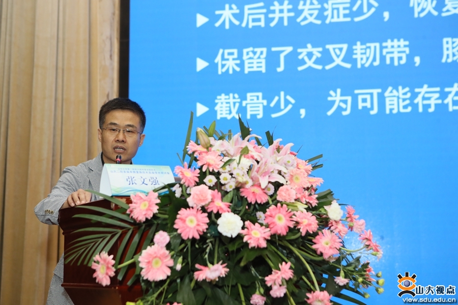 冯世庆表示,研讨会创办的初衷是为弘扬科学精神,传播最新学术动态,共享最新科研成果,为广大医务工作者提供自由的学术交流机会。靳斌介绍了医院“开拓创新 追求卓越”发展理念、“一院三区”发展格局和“四型一化”发展规划和目标,表示山东大学第二医院始终秉承科技引领、创新领先的发展理念,注重学科建设和学术交流,将继续擦亮“齐鲁系”“学院派”和“国家队”三张名片,高起点定位、高标准推进,全面促进医院高质量发展。山东大学第二医院关节外科/运动医学科名誉主任王韶进表示,单髁置换术是关节领域“新兴”而成熟的手术方式,作为膝关节骨关节炎阶梯治疗的重要一环,可为广大单间室关节炎患者提供更优的选择。山东大学第二医院关节外科/运动医学科主任刘文广介绍了山东大学第二医院关节外科/运动医学科的传承、科室架构及特色技术,表示学科将更加重视和加强与兄弟单位和各位专家同仁的合作发展,进一步强化学术交流,推动科研进步,不断提升医疗服务水平,助力健康山东建设。