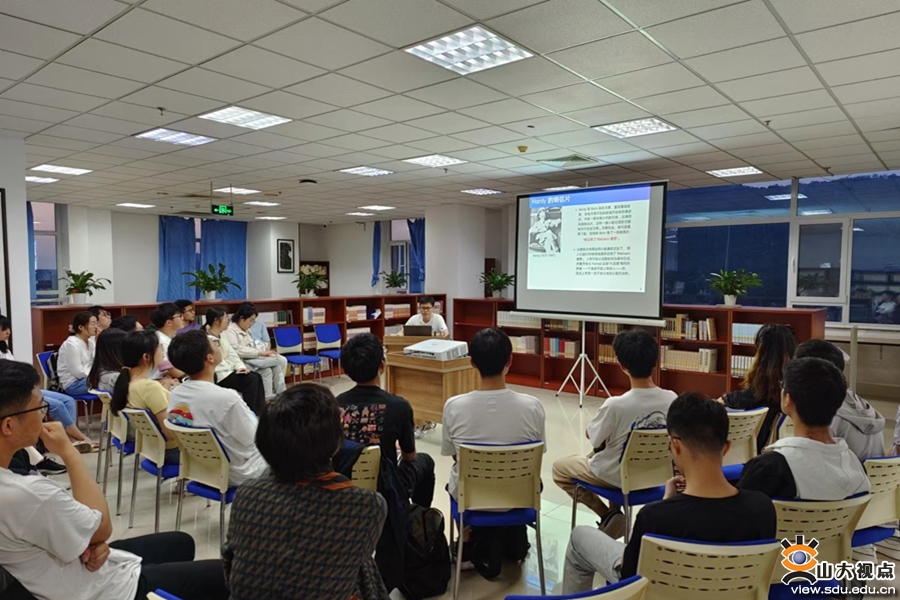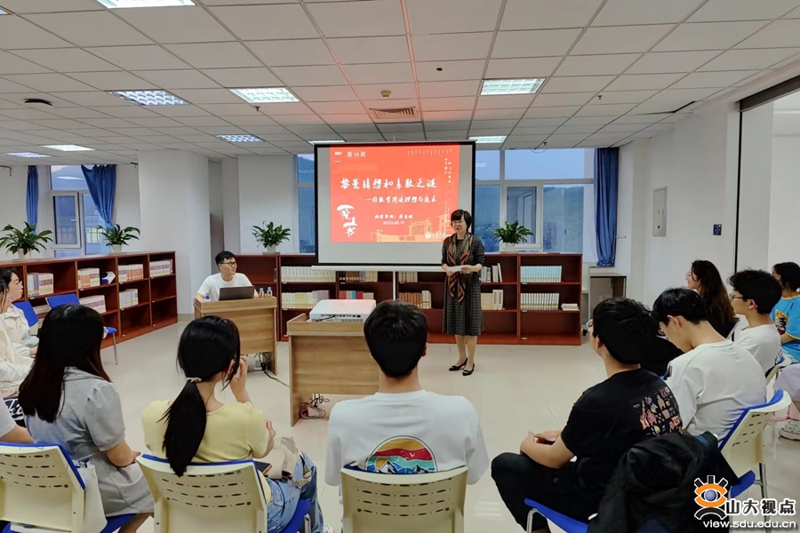 [本站讯]5月15日晚,图书馆通过线上线下结合的形式举行2023年首期“一院一书”跨学科导读活动。山东大学(威海)数学与统计学院副教授蒋玉蛟以“黎曼猜想和素数之谜”为主题作导读讲座,校区图书馆直属党支部书记、馆长程蓓主持活动。本次活动是“一院一书”跨学科导读品牌活动第十六期。