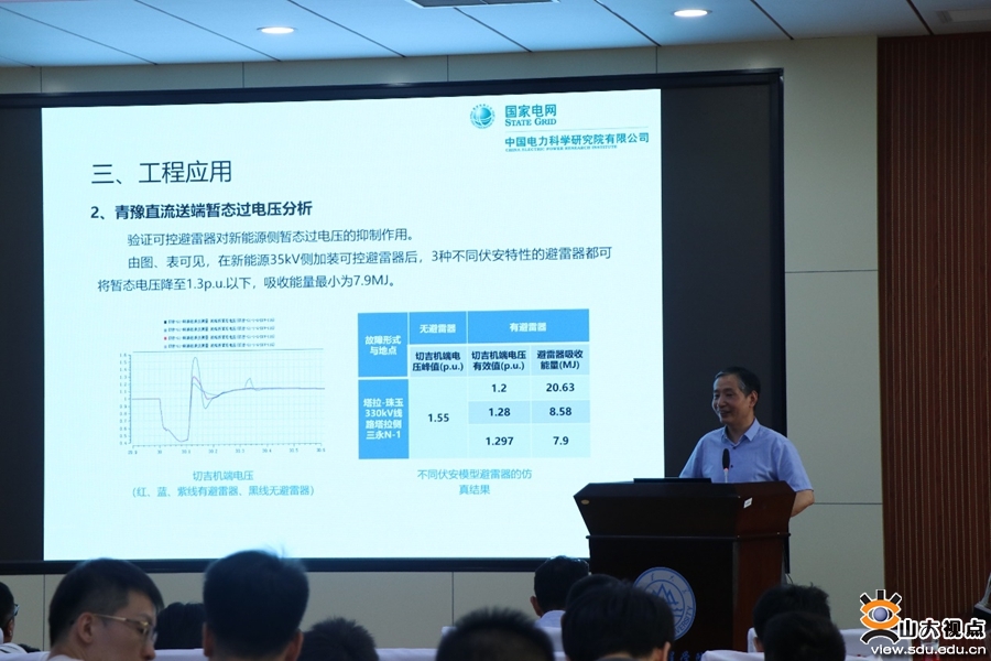 [本站讯]5月23日,由山东大学研究生院、党委研究生工作部主办,电气工程学院承办的第22期(总第1232期)“稷下风”研究生学术讲坛在千佛山校区举行。中国电科院国家电网仿真中心副主任李亚楼,作主题为“大电网电磁暂态仿真技术及应用”的报告。国网智能电网研究院教高荆平,山东大学电气工程学院院长丁磊、副院长叶华出席论坛。讲坛由电气学院教授武守远主持。