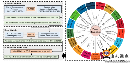 构建了全球电力转型影响综合评估模型。本研究耦合了全球气候变化综合评估模型(GCAM)、多区域投入产出分析模型(MRIO)和联合国可持续发展目标进展评估方法,构建了全球电力转型影响综合评估模型。该模型为系统评估电力转型对全球可持续发展目标进展的影响提供了方法和工具。