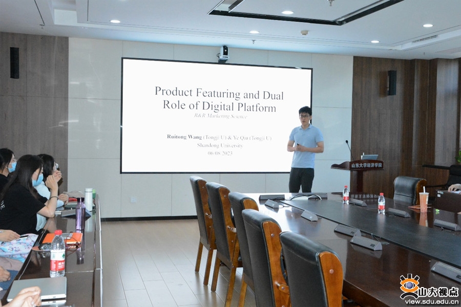 [本站讯]6月8日下午,经济学院第307期高级经济学讲座于中心校区举行,同济大学教授王睿通作了题为“Product Featuring and Dual Role of Digital Platform”的学术报告,讲座由经济学院助理研究员李越主持,部分师生参会。