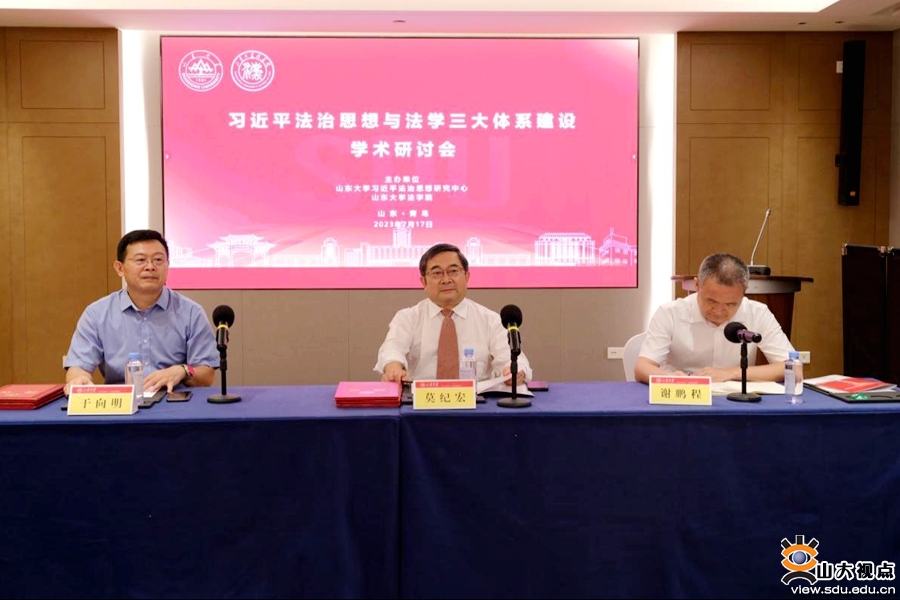 [本站讯]7月17日,由山东大学习近平法治思想研究中心、山东大学法学院主办的习近平法治思想与法学三大体系建设学术研讨会在青岛举行。来自最高人民检察院、中国社会科学院、中国石油大学(华东)、中国政法大学、华东政法大学、山东省法学会、青岛市社科院等单位的近三十位专家,围绕习近平法治思想指导下的法学学科体系、学术体系和话语体系建设进行学术研讨。
