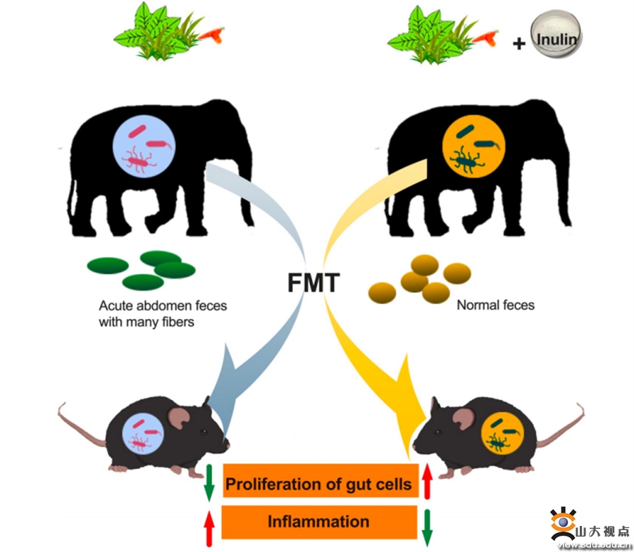 图3 肠道菌群移植揭示益生元对亚洲象肠道疾病的治疗机制