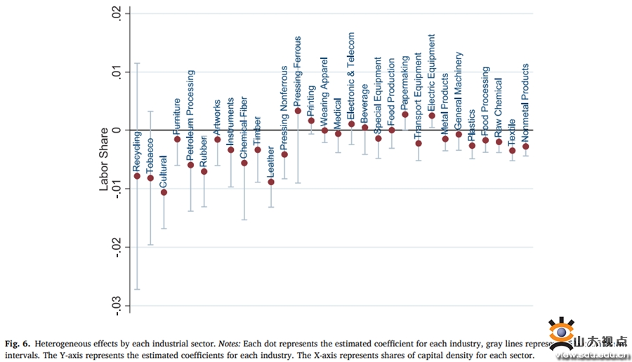 本研究利用两阶段最小二乘法(2SLS),使用热反演作为工具变量,研究空气污染对劳动收入份额(LS)的影响。结果表明,PM2.5浓度每增加1 μg/m3,LS就会下降0.17个百分点。我们检验了空气污染可能影响LS的两种可能渠道。劳动生产率和企业生产率的下降以及平均工资的降低是集约边际(intensive margin)的主要渠道;而对于广延边际方面(extensive margin),我们主要关注对员工人数和资本使用的影响,并确定其对不同技术类型公司的影响。我们发现:低技术企业会雇佣更多的员工来抵消空气污染造成的生产性损失,而高技术企业的就业员工人数变化没有显著影响,同时我们没有发现对资本的使用有显著影响。对于异质性而言,对私营企业、员工受教育程度较低的企业、无工会的企业和劳动密集型行业的影响更大。我们的研究结果表明,提高公众对空气污染的认识可能有助于减少社会不平等。