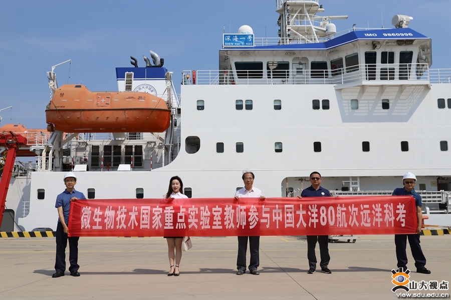 [本站讯]近日,搭载“蛟龙号”载人潜水器及全体科考队员的“深海一号”船胜利返回青岛国家深海基地码头,标志着本次中国大洋80航次第I航段顺利结束。山东大学微生物技术国家重点实验室(以下简称为“国重室”)刘怀伟和刘琨两位教师作为科考队员全程参与了本行段任务,这是山东大学以及国重室首次乘“蛟龙号”进行的远洋深潜考察。靠泊当日,国重室常务副主任李盛英专程赴青岛国家深海基地码头迎接两位教师凯旋。