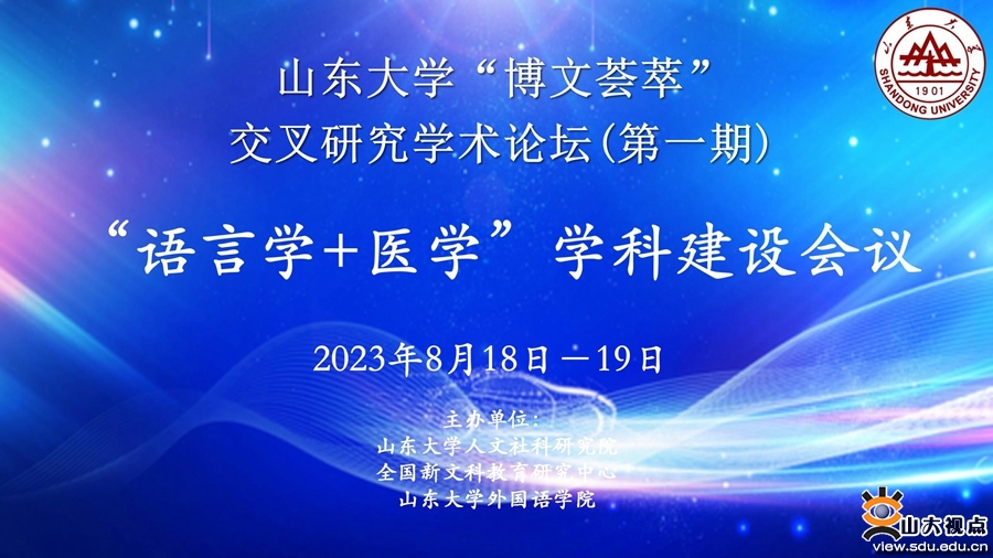 [本站讯]8月18日至19日,山东大学首期“博文荟萃”交叉研究学术论坛:“语言学+医学”学科建设会议在济南珍珠泉宾馆举办。会议由山东大学人文社科研究院、全国新文科教育研究中心、山东大学外国语学院主办,来自国内外的40多位知名专家学者、研究人员受邀参会,其中有来自脑科学、神经科学、精神病学、耳鼻咽喉科学、儿科学、康复医学等不同学科领域的医学专家或临床医生,也有来自临床语言学、实验语音学、心理语言学、语料库语言学等语言学领域的教授学者。与会专家围绕“语言学+医学”前沿研究和临床语言学学科建设展开深入讨论,集思广益、深度融合,为该领域的未来发展勾画蓝图,充分展示了在新文科时代背景下山东大学“语言学+医学”交叉研究的发展成就和蓬勃的学术生命力。