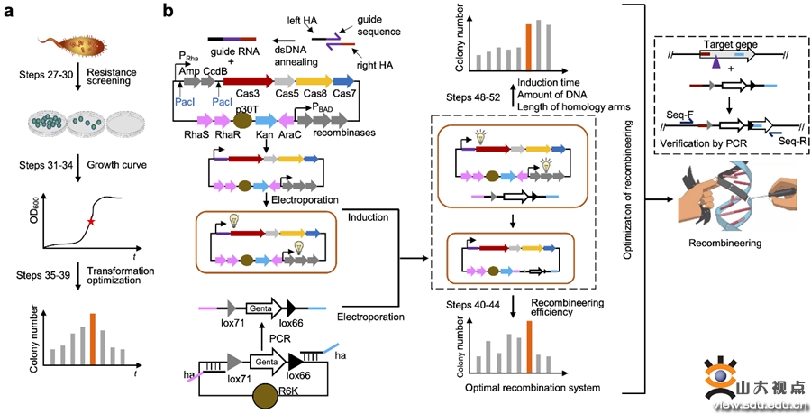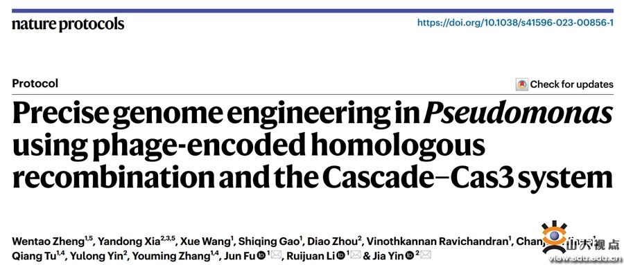 [本站讯]近日,微生物技术国家重点实验室符军教授团队联合湖南师范大学尹佳副教授团队利用噬菌体编码的同源重组系统和CRISPR-Cas3系统对假单胞菌进行精准基因组工程编辑,开发了非模式假单胞菌的高效基因组编辑技术,在Nature Protocols上在线发表了题为“Precise genome engineering inPseudomonas using phage-encoded homologous recombination and the Cascade-Cas3 system”的论文。山东大学微生物技术国家重点实验室教授符军、长聘副研究员李瑞娟,湖南师范大学副教授尹佳为共同通讯作者,山东大学郑文韬、湖南师范大学夏艳东为论文的共同第一作者。山东大学微生物技术国家重点实验室为第一完成单位和通讯作者单位。