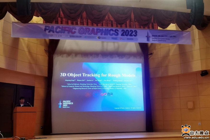 [本站讯]太平洋计算机图形学与应用会议(Pacific Graphics 2023)于10月10日至13日在韩国大田的大田会展中心举行。软件学院两篇文章被大会录用,秦学英教授指导的博士研究生宋修强和王璐教授指导的博士研究生徐晓峰参加会议,并作论文报告展示。