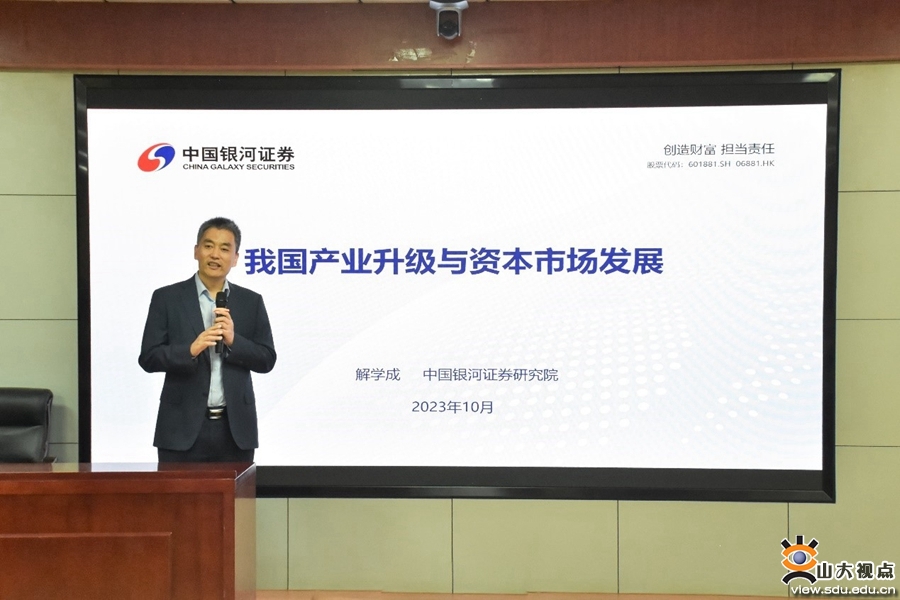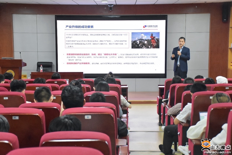 [本站讯]10月26日晚,经济学院第二期薛暮桥经济学前沿讲座于中心校区举行,银河证券研究院副院长解学成作了主题为“我国产业升级与资本市场发展”的报告,讲座由经济学院党委副书记李良杰主持,经济学拔尖2.0基地(薛暮桥班)全体学生及部分研究生参加讲座。