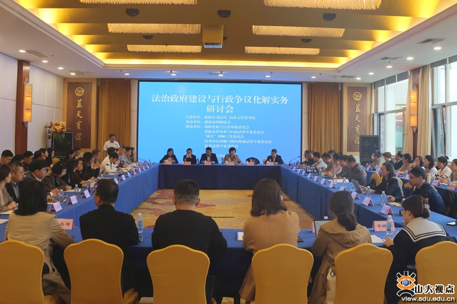 [本站讯]11月4日,“法治政府建设与行政争议化解”实务研讨会在威海举行。研讨会由威海市司法局、山东大学法学院联合主办,威海市律师协会承办。专家学者、政府法制工作人员、威海市律师协会相关专业委员会委员及威海市执业律师、威海市中级人民法院法官等80余人参加研讨会。
