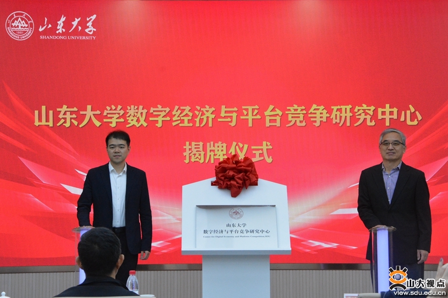 [本站讯]11月4日上午,山东大学数字经济与平台竞争研究中心揭牌仪式暨学术研讨会在中心校区明德楼举行。会议由山东大学经济学院、山东大学数字经济与平台竞争研究中心主办。国家市场监督管理总局反垄断执法一司数字经济执法处负责人刘弋锋、山东省市场监督管理局反垄断局副局长李春山,山东大学人文社科研究院副院长王涛、山东大学经济学院院长林平出席会议。